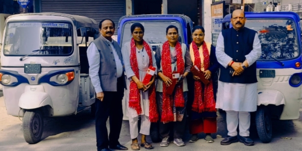 कांग्रेसियों ने किया महिला ई रिक्शा चालकों को सम्मानित