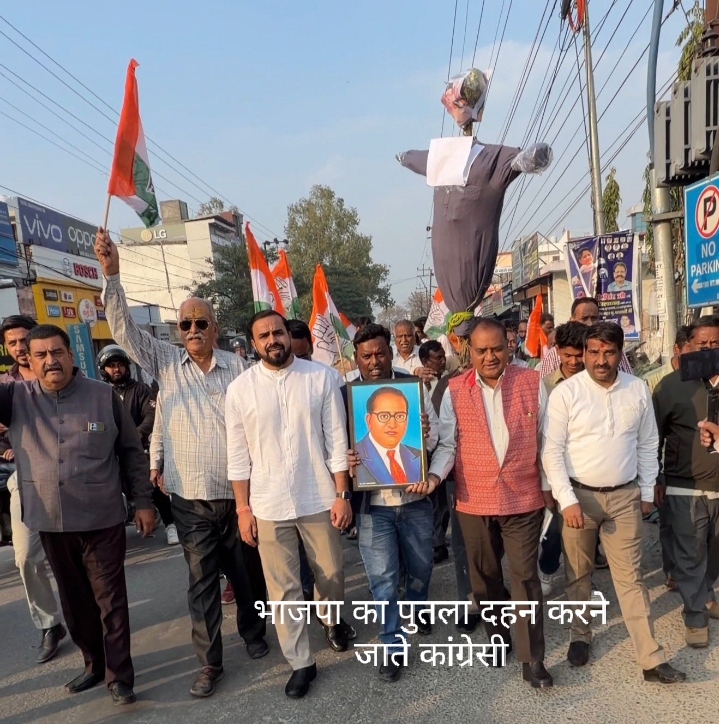 बाबा साहेब के अपमान पर कांग्रेस ने फूंका भाजपा का पुतला